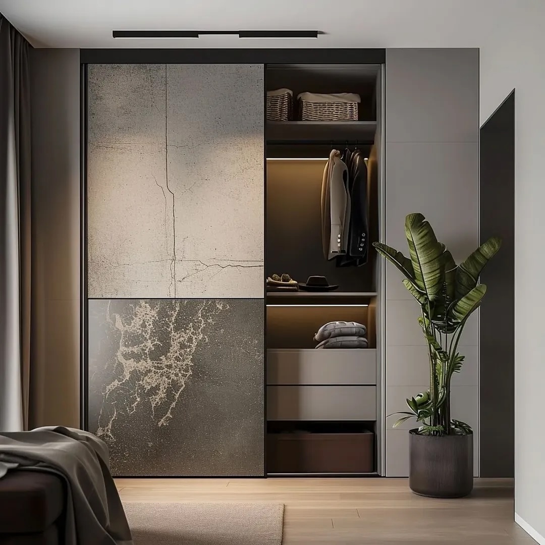 Bedroom concepts centered around sleek sliding shutters and premium wardrobe detailing.
