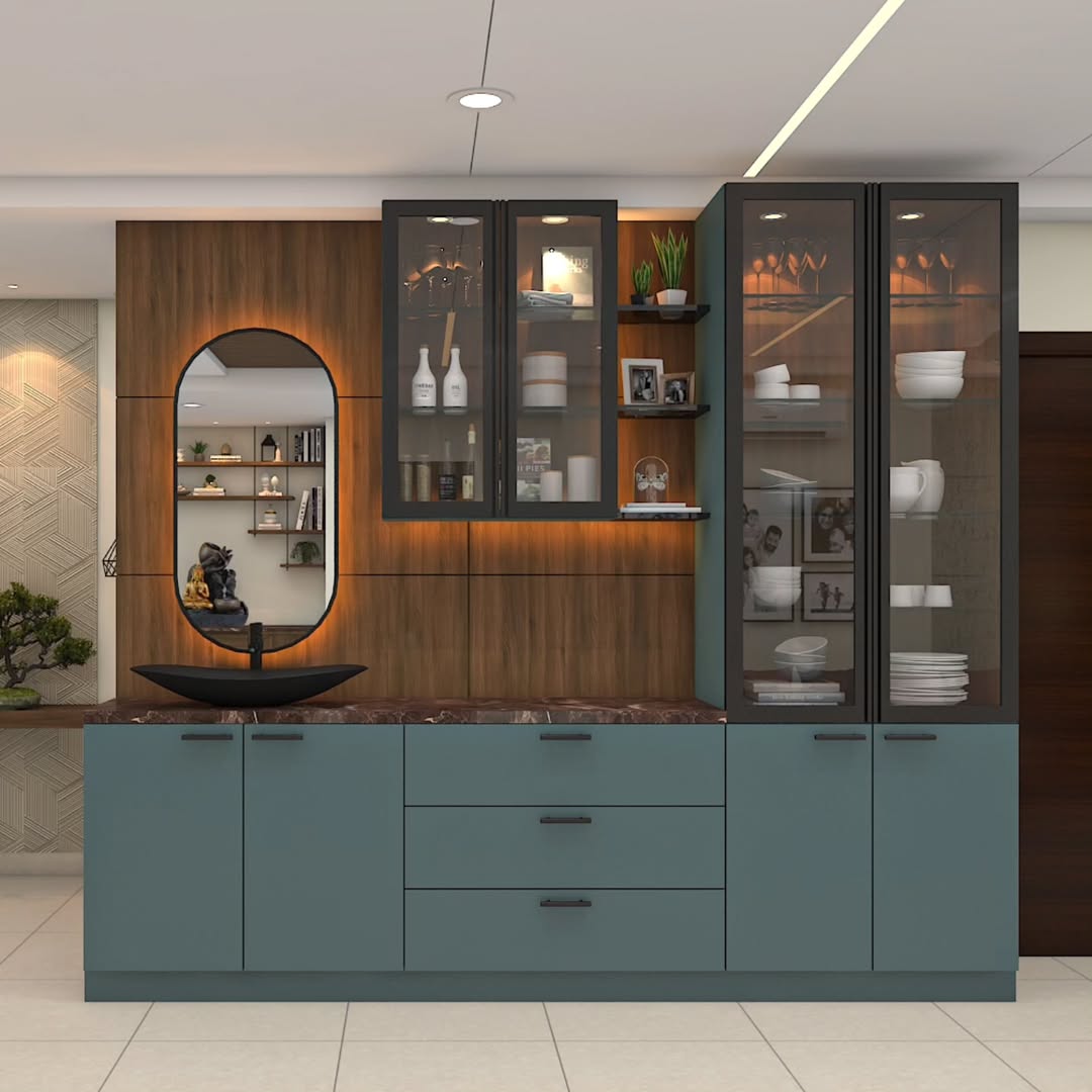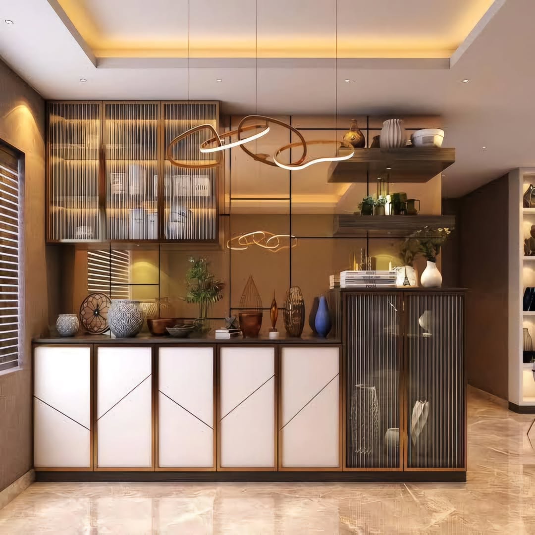 Our crockery and display units combine storage, lighting, and visual layering so your dining or transition spaces feel refined rather than purely functional.