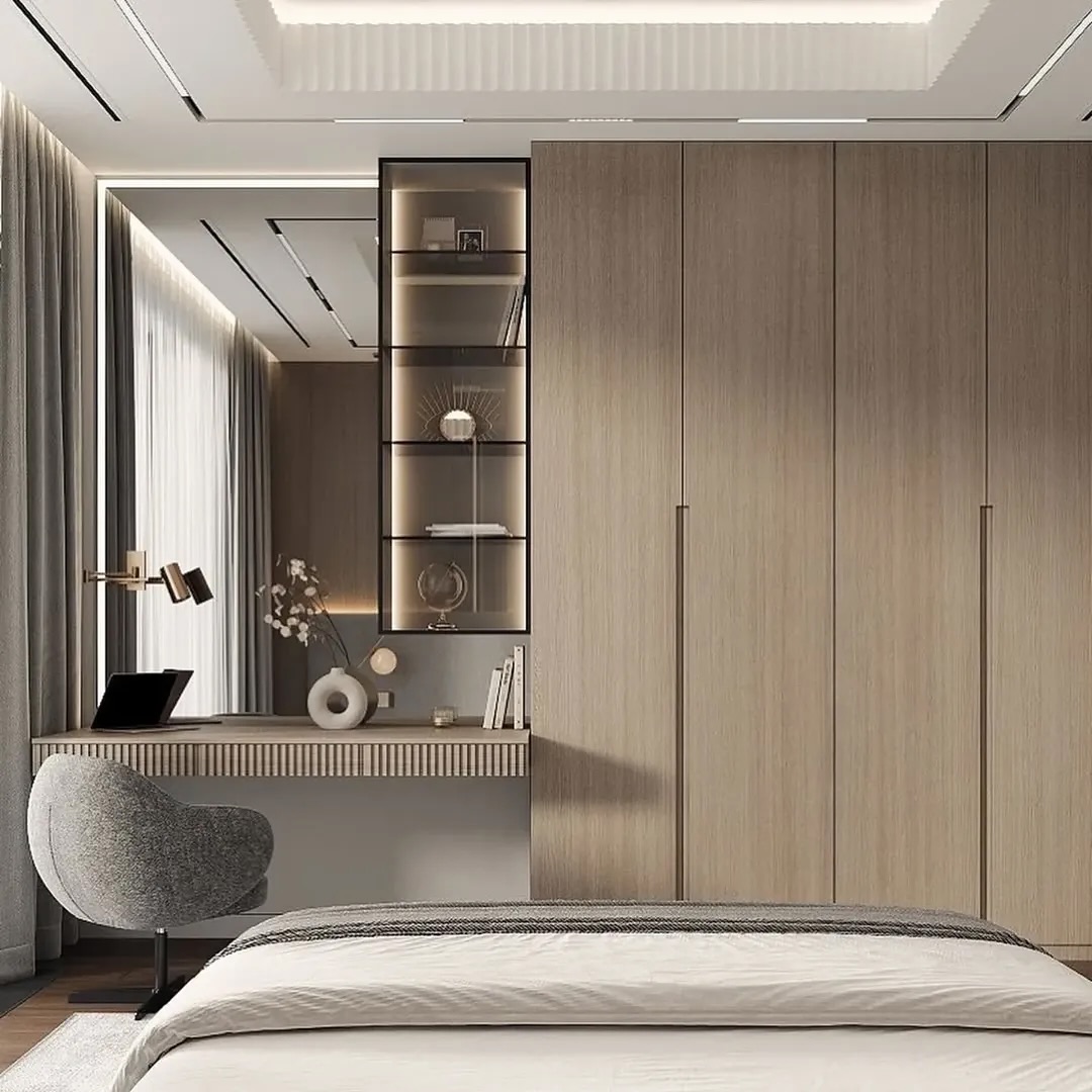 Our master bedrooms are built as calming personal retreats. We shape the bed backdrop, wardrobe language, vanity, ceiling, and ambient lighting as one seamless experience.